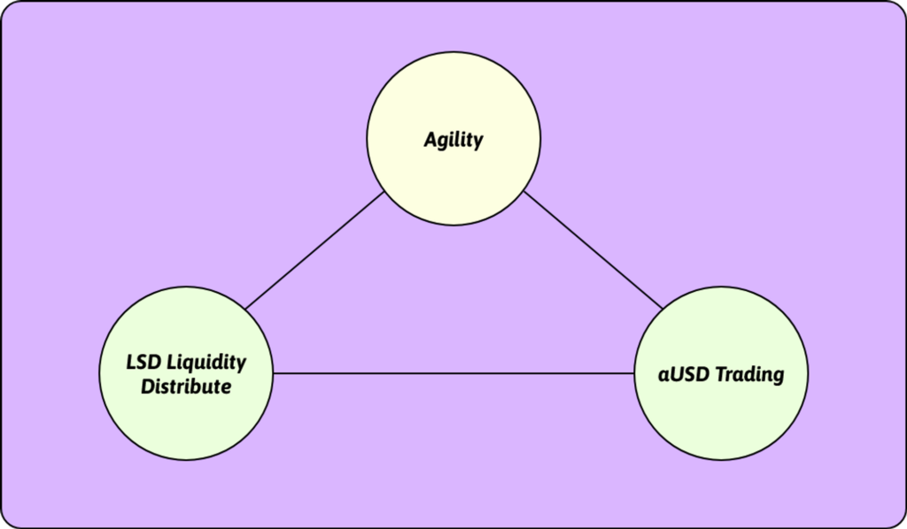 Agility LSD cũng sử dụng một số tính năng của blockchain như tính phi tập trung và tính khả mở, cho phép các thành viên trong dự án truy cập vào thông tin và thực hiện các hoạt động một