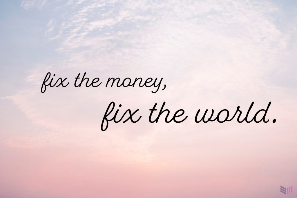 Bitcoin và công nghệ của nó đưa ra một giải pháp thực sự, fix the money, fix the world – cân bằng tiền tệ để cân bằng thế giới.