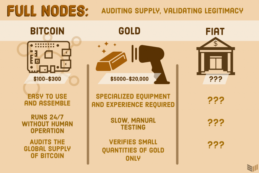 Chạy nút của riêng mình cũng khiến cho mình chả cần phải tin bố con thằng nào cả. Và các nút sẽ mãi mãi trung thực, hơn nữa việc chạy các giao dịch thông qua nút đầy đủ của riêng bạn, về cơ bản bạn đang trở thành ngân hàng của chính mình. Đó là một tính năng khá thú vị mà không thực sự khả thi với fiat, vàng hoặc bất kỳ thứ gì khác có thể được sử dụng làm tiền tệ.