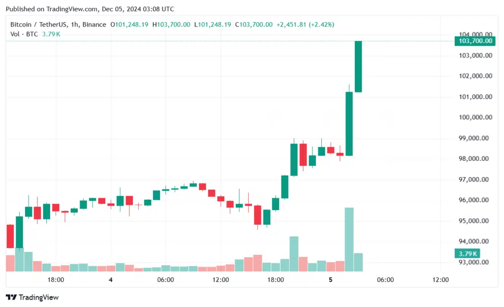 Bitcoin Tiếp Tục Tăng Giá: Mới Nhất Đạt 103.700 USD