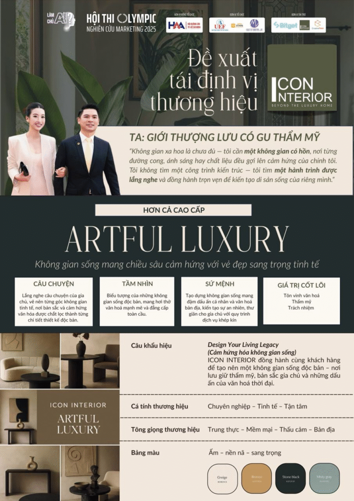Trong vai trò Ban Giám khảo cuộc thi Olympic Nghiên cứu Marketing 2025 do Trường Đại học Kinh tế – Tài chính TP.HCM (UEF) tổ chức, Bitget vinh dự được tiếp cận và đánh giá hàng loạt đề án sáng tạo, trong đó nổi bật là dự án “ICON INTERIOR – Artful Luxury” với đề xuất tái định vị thương hiệu hướng đến giới thượng lưu có gu thẩm mỹ – một phân khúc đang ngày càng được quan tâm trong kỷ nguyên tiêu dùng cá nhân hóa.