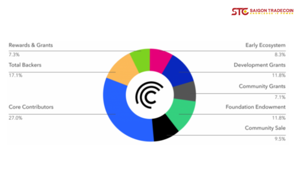 Ngoài ra, 3% CFG dự kiến sẽ được Minted mỗi năm dưới dạng phần thưởng khối Proof-of-Stake (PoS), phần thưởng lock DOT (để đấu giá Parachain Slots) và phần thưởng thanh khoản. Tuy nhiên, phí giao dịch bị Burn khỏi lưu thông sẽ ổn định tổng nguồn cung cấp CFG theo thời gian.
