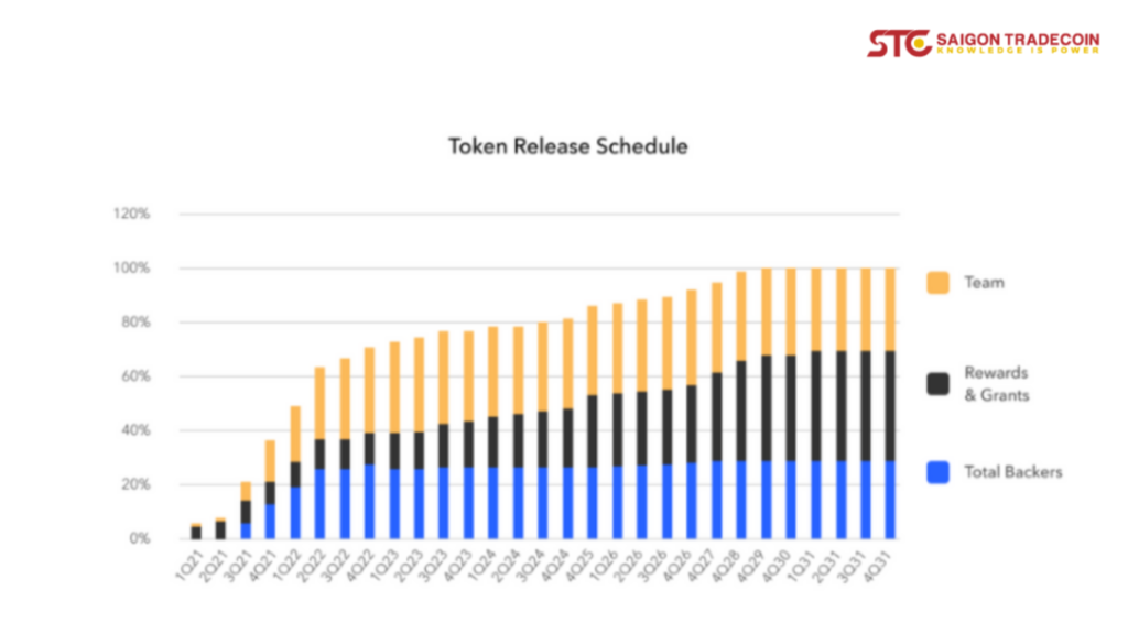 Hầu hết các token đều được khóa dài hạn. Những người đóng góp cốt lõi và những người ủng hộ ban đầu vesting token mỗi tháng trong 1 năm kể từ tháng 7 năm 2021. Core team khóa 48 tháng và vesting token trong 12 tháng.
