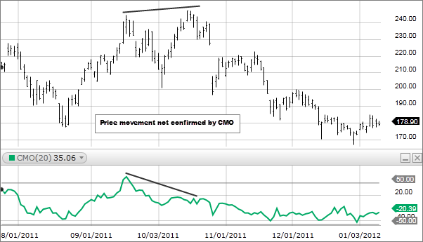 CMO được sử dụng như một công cụ để phát hiện các điểm đảo chiều trong giá cổ phiếu và đưa ra quyết định mua hoặc bán. Khi giá cổ phiếu tăng nhanh và CMO vượt qua ngưỡng 50, thì có thể xem đó là tín hiệu mua. Ngược lại, khi giá cổ phiếu giảm mạnh và CMO dưới ngưỡng -50, thì đó là tín hiệu bán.