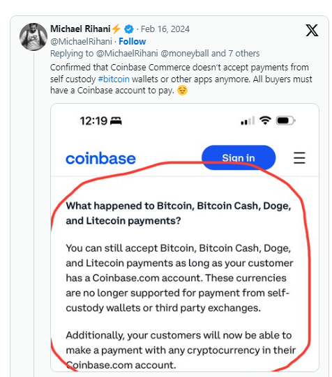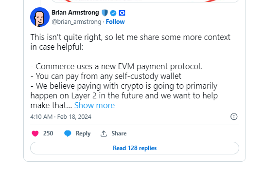 Tuy vậy, CEO của Coinbase, Brian Armstrong, nhấn mạnh rằng người dùng Bitcoin vẫn có thể sử dụng Coinbase Commerce nếu họ có tài khoản tại sàn giao dịch này.