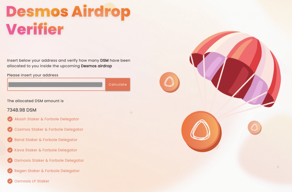 Để kiểm tra bạn có đủ điều kiện để nhận airdop và số lượng DSM, mọi người truy cập đường link sau nhé: https://airdrop.desmos.network/