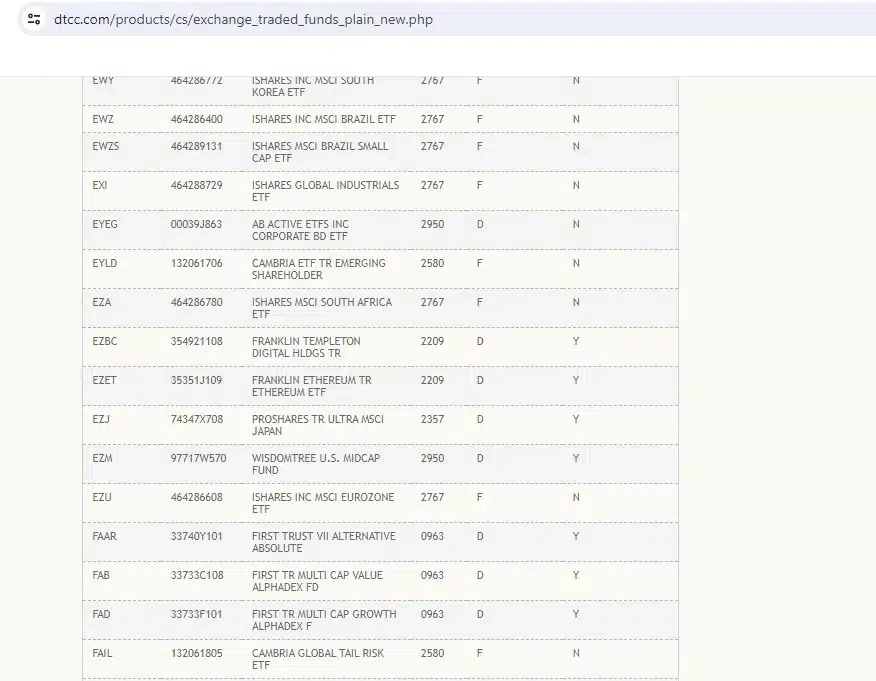 Hiện nay, ETF Ethereum đã được niêm yết trên trang web của Tổ chức Clearing và Chứng khoán (DTCC), một nền tảng quan trọng cho các giao dịch chứng khoán tại Hoa Kỳ.