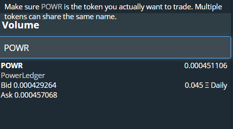 Đối với mục đích của hướng dẫn này, mã token ERC20 mà tôi sẽ mua và bán sẽ là PowerLedger (POWR). Khi bạn chọn một mã token cụ thể từ danh sách, bạn sẽ thấy giao diện tự động cập nhật để phản ánh chi tiết về mã thông báo đã chọn.
