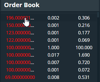 Đúng vậy, một số người đang đặt giá từ một POWR đến 196 ETH! Đó là đắt hơn 400.000 lần so với tỷ giá thị trường hiện tại. Rõ ràng, đây là những người chỉ tìm kiếm những người mới có thể không biết cách đọc sổ lệnh. Hoặc thậm chí không thèm kiểm tra giá thị trường trước đó. Vì vậy, hãy chắc chắn rằng bạn không rơi vào một trong những đơn đặt hàng có giá vô lý này. Bạn cũng có thể tìm thấy những mức giá lố bịch như vậy ở cuối sổ đặt lệnh mua.
