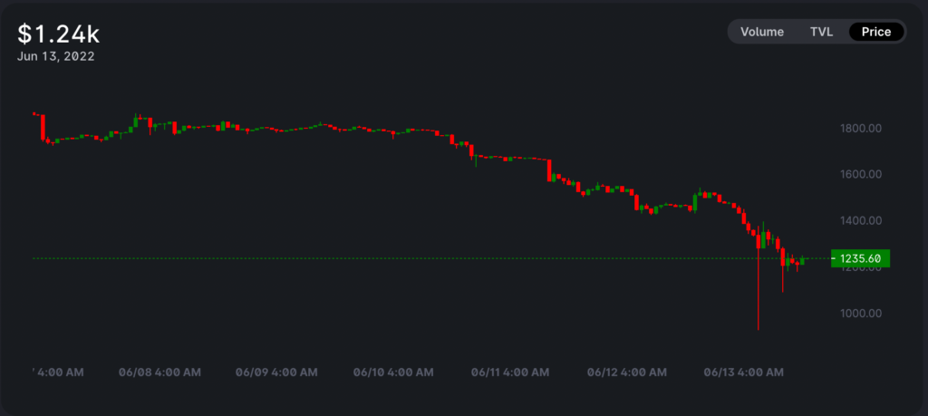Mã thông báo gốc Ether (ETH) của Ethereum đã giảm xuống còn 950 đô la trên Uniswap – một sàn giao dịch tiền điện tử phi tập trung – vào ngày 13 tháng 6 này, thấp hơn khoảng 20% so với tỷ giá giao ngay trên các sàn giao dịch khác.