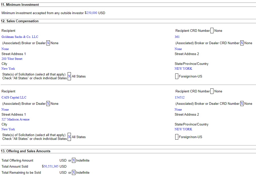 Công ty quản lý tài sản độc lập CAIS Capital cũng được liệt kê trong hồ sơ với tư cách là đơn vị nhận phí đăng ký để giới thiệu khách hàng của mình đến Quỹ ETH của Galaxy. Số tiền phí giới thiệu của Goldman và của CAIS không được tiết lộ.