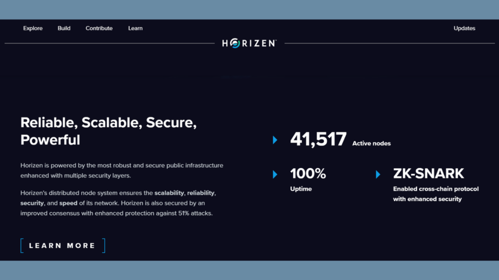 - Độ tin cậy: Horizen đang cố gắng xây dựng một mạng lưới blockchain có tính năng chống lại sự tấn công từ bên ngoài, bằng cách sử dụng các giao thức bảo mật đáng tin cậy và công nghệ khai thác khối có độ khó cao.