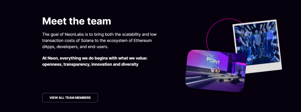 - Mục tiêu của NeonLabs là mang tính mở rộng và chi phí giao dịch thấp của Solana đến hệ sinh thái Ethereum dApps, các nhà phát triển và người dùng cuối.