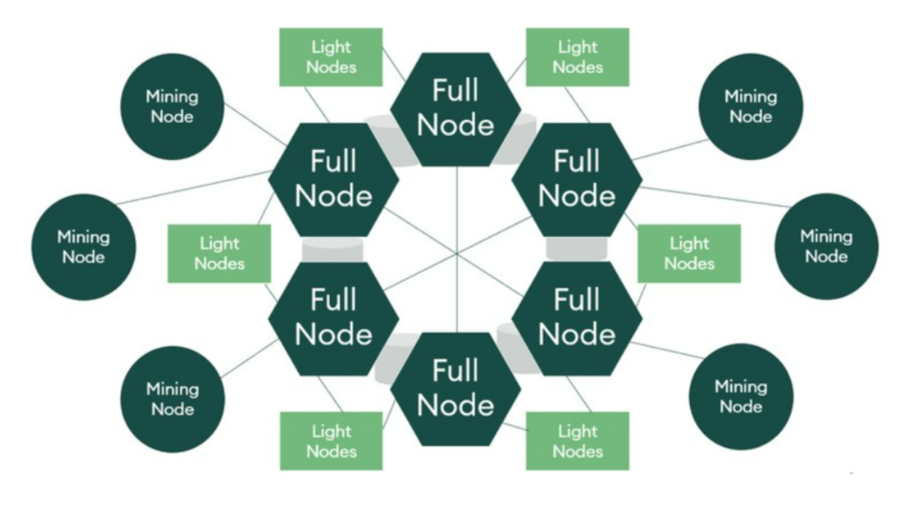 Cần có một sự lưu ý ở đây về hai thuật ngữ fullnode và node. Hai thuật ngữ này không phải là một, chúng có sự khác biệt cơ bản. Các fullnode chứa toàn bộ lịch sử và thông tin liên quan của mọi block. Kể từ khi giao dịch đầu tiên được diễn ra trên nền tảng. Fullnode là xương sống của một blockchain. Chúng đảm nhiệm việc duy trì sự đồng thuận giữa các trong mạng lưới. Hơn hết là xác minh các giao dịch và block. Do phải lưu trữ nhiều thông tin và dữ liệu, fullnode thường là các máy tính. Hoặc máy chủ có cấu hình, khả năng xử lý mạnh mẽ.