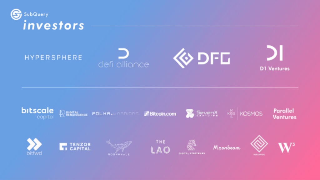 SubQuery vừa hoàn thành vòng gọi vốn thiên thần (seed round) đầu tiên vào ngày 12 tháng 3 với tổng số vốn gọi là 1.8M USD. Các nhà đầu tư seed round gồm có các quỹ: Defi Alliance, D1 Venture, Hypersphere Venture, Digital Finance Group (DFG) và the Lao.