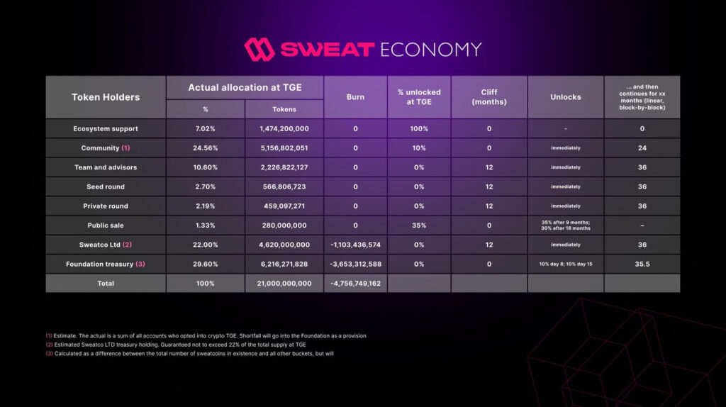 Những người tạo ra Sweatcoin luôn quan tâm đến cách thức mà tiền điện tử và sức khỏe thể chất có thể tương hỗ lẫn nhau. Tuy nhiên, vào thời điểm ứng dụng được phát hành, họ cảm thấy rằng công chúng không đủ thoải mái với tiền điện tử để sử dụng nó như một phần thưởng tập thể dục. Sau nhiều năm hoàn thiện ứng dụng, Sweatcoin đã thông báo rằng cuối cùng họ đã sẵn sàng thực hiện bước tiếp theo. Tiền điện tử Sweatcoin được xây dựng trên Ethereum và sử dụng NEAR làm chuỗi khối của nó.