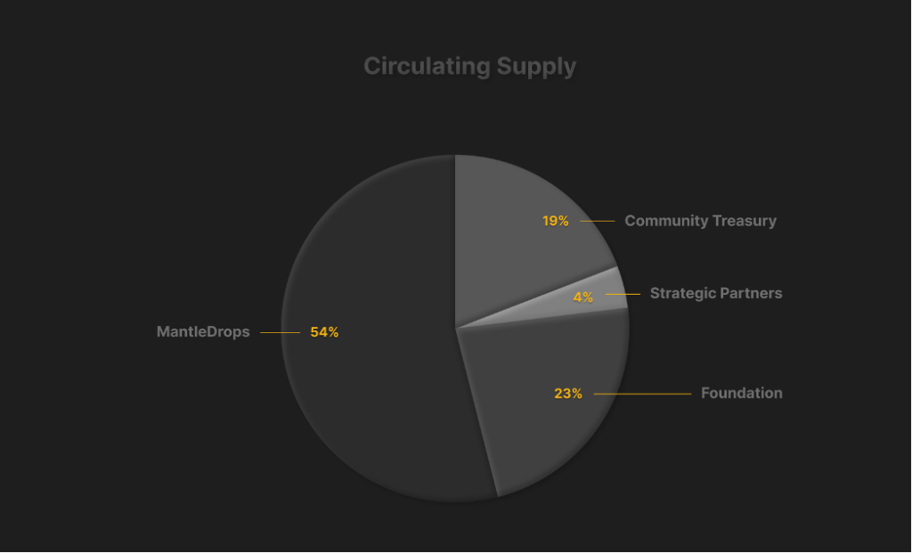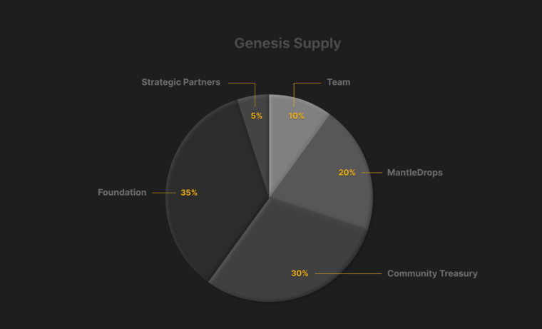 Phân phối MNTL được thiết kế bao gồm 50% nguồn cung do cộng đồng quản lý nhằm khuyến khích những người ủng hộ hệ sinh thái dưới dạng MantleDrops, cũng như là reward cho các bên liên quan của MantlePlace.