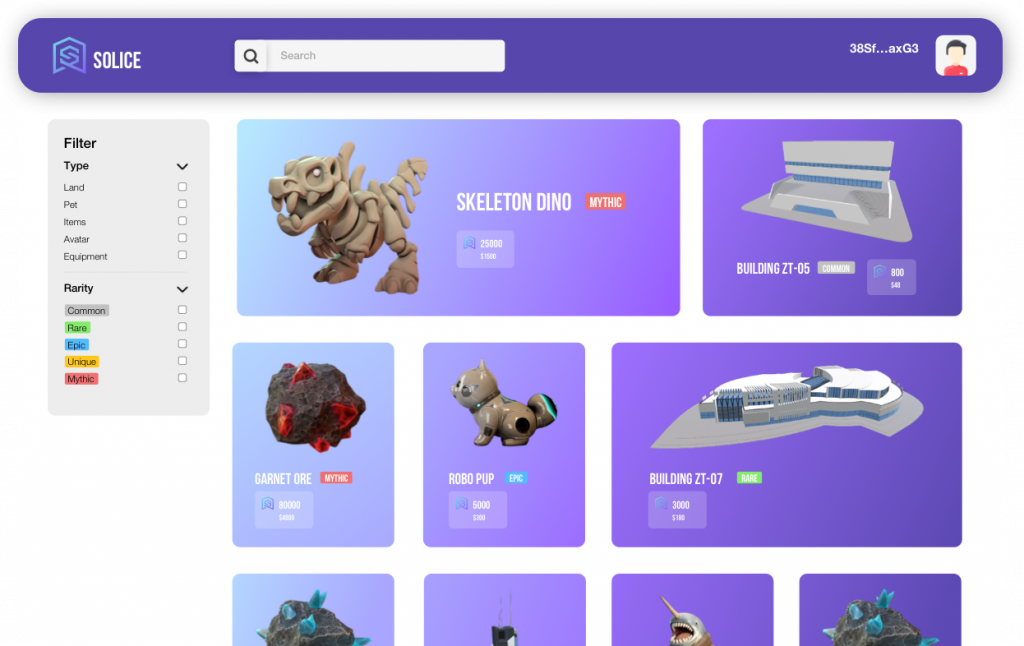 - Hệ thống vật nuôi: Sẽ có rất nhiều vật nuôi trong Solice metaverse, tất cả đều có các thuộc tính khác nhau và mức độ hiếm khác nhau. Những yếu tố đó sẽ thông báo các tỷ lệ APY khác nhau, mang đến cho người dùng cơ hội cao hơn để kiếm được các vật phẩm quý hiếm, như đá quý – hoặc Trứng có thể nở thành vật nuôi mới!