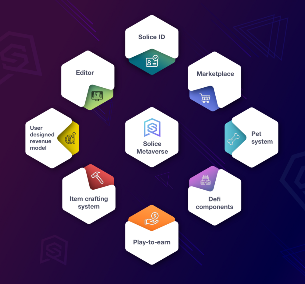 Solice tạo ra một metaverse hoàn toàn nhập vai, trong đó người dùng có cơ hội hợp tác và phát triển thế giới và nội dung mà không cần kiểm soát tập trung. Solice muốn phá vỡ ngành công nghiệp trò chơi truyền thống bằng cách trao cho người dùng quyền sở hữu thực sự đối với các sáng tạo của họ dưới dạng NFT và phần thưởng tham gia bằng utility token của Solice.
