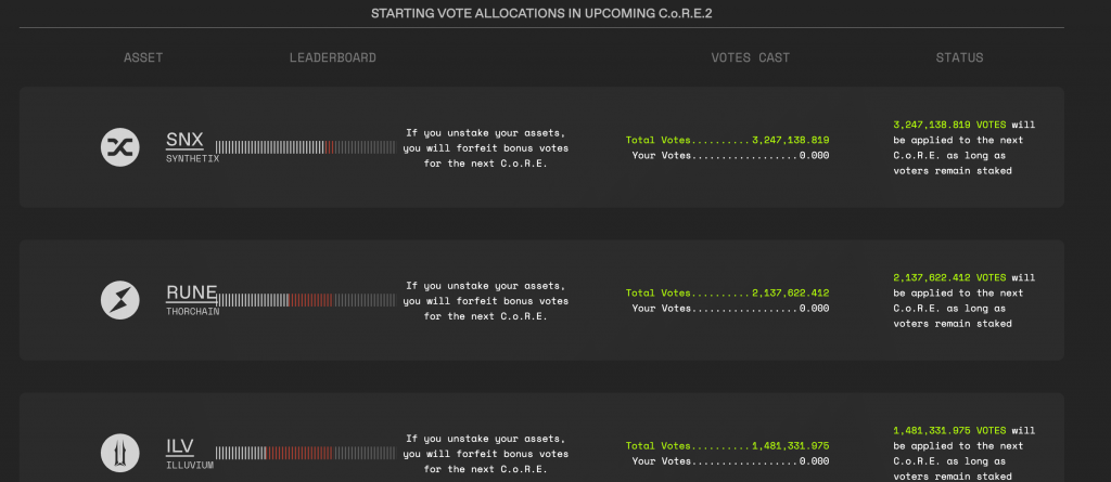 Các phiếu bầu cho mỗi pool được thực hiện bằng TOKE. Do đó, nếu bạn nắm giữ SNX và muốn Synthetix có tính thanh khoản tốt hơn, bạn cần phải mua TOKE để bỏ phiếu.